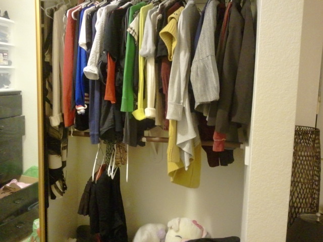 My rule of thumb was if I hadn't worn in it in the last 6 moths it had to go out. There was no looking back or second guessing. That pretty much meant 3/4 of my closet. *yikes* I winded up with a pile ip to my hip. It felt good though to tidy up my shelves and closet. I could now see my clothes thoroughly and actually remember what all exactly I had. Don't you love when your going through your stuff you find little surprises- clothes you forgot you had. Some of the things I found still had price tags on it. It was a shame because I bought some of these clothes thinking that I would save them for some "special occasion." Well, that occasion never came and now I'm out of that $40 I invested on the thought. In the end my closet finally saw the sunlight and the extra clothes were donated and never missed again.