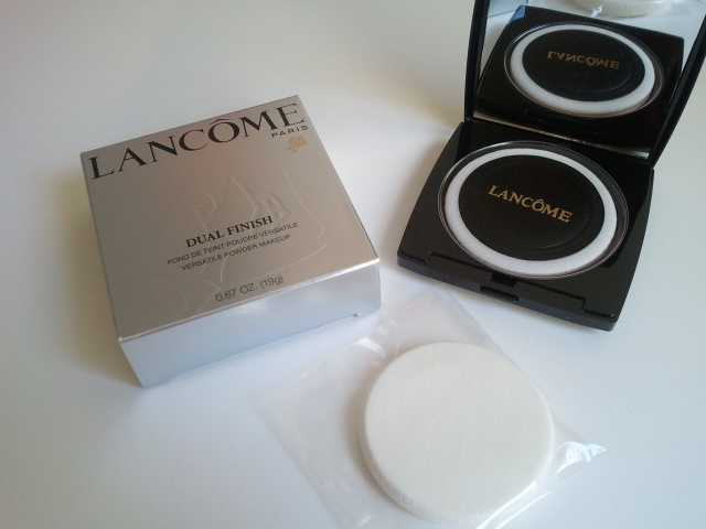I wasn't really on the look out for new makeup and normally I would buy the juicy lipgloss, but I had just purchased one a month ago. So therefor the lady sold me on their dual finish powder. She stated the fact that I had really nice skin, but this would help make my face look flawless. (I liked her tactic and gave in to her sales pitch. Plus she even took the time to give me a whole makeover practically.)