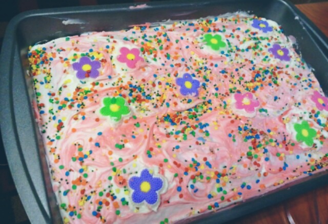 Did I mention there was cake topped with sugary vanilla frosting and confetti sprinkles? Yeah, today was a good day.