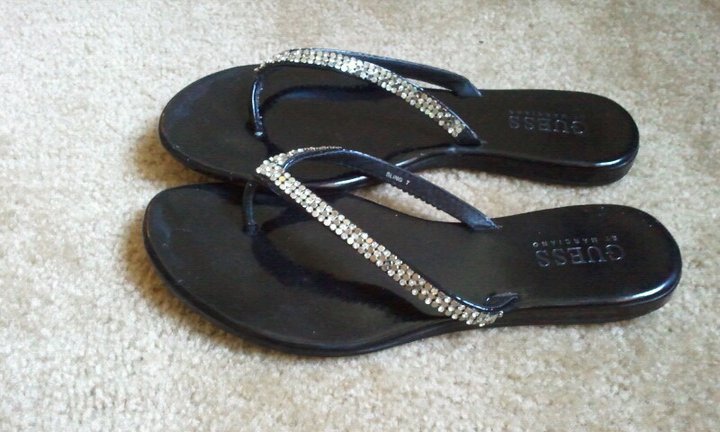 Guess- These sparkle so much in the sunlight, but the sandal is so flat and hard that it hurts my feet after a couple of hours.