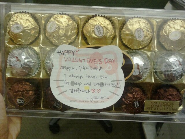 When I came back to work Younmi was so cute to give me my Valentine’s gift-