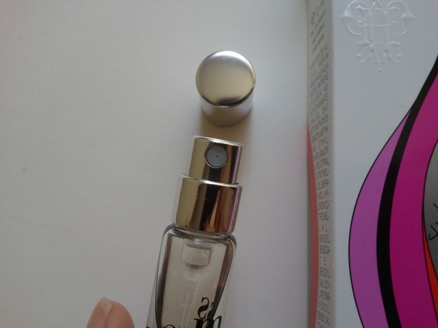 I discovered this perfume from a sample pack I had received (back in March for my bday.) I was going through some crumpled up tissue paper I had found lying around and noticed it wrapped in it. I guess I didn't look through my bag thoroughly. *ooppsies*